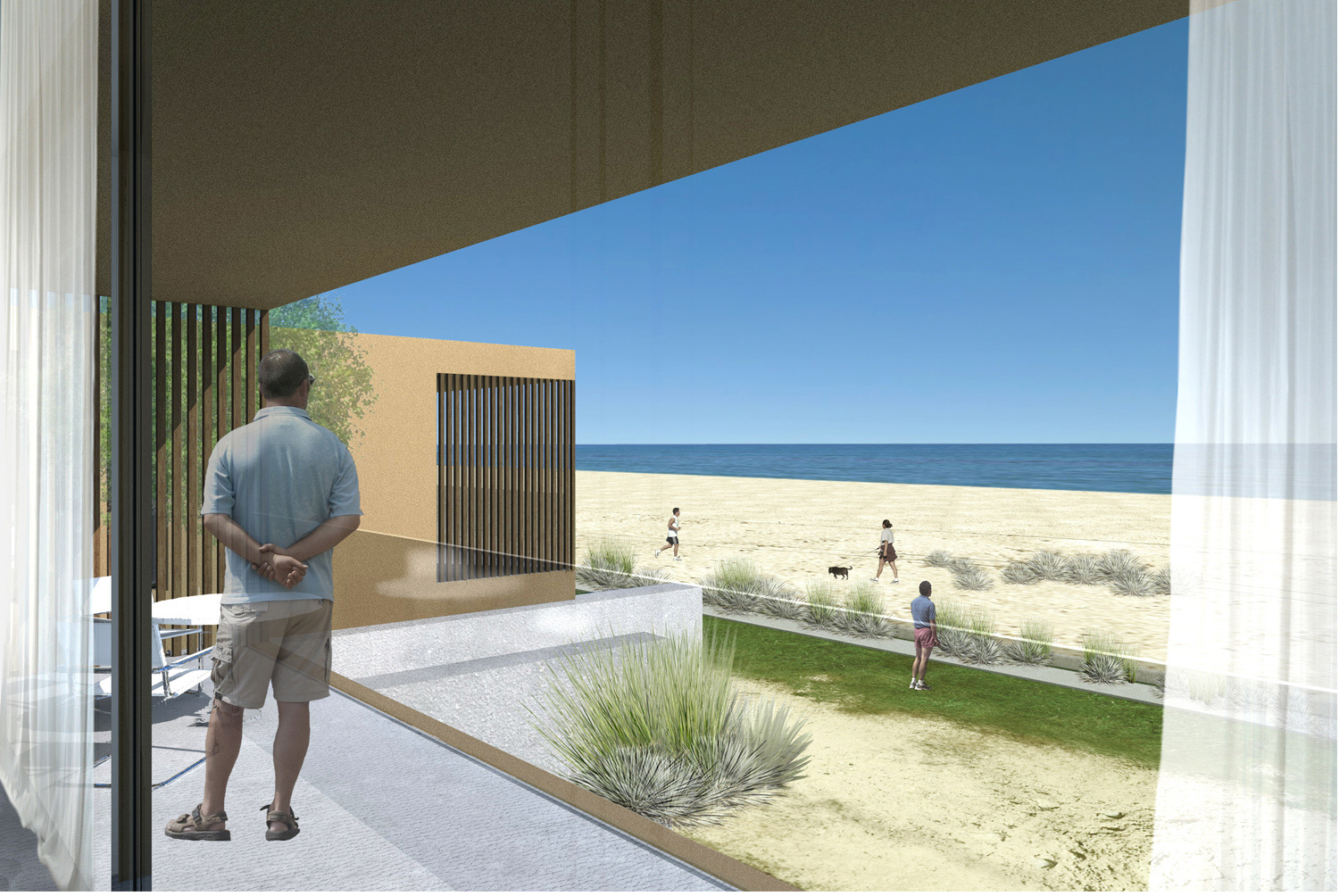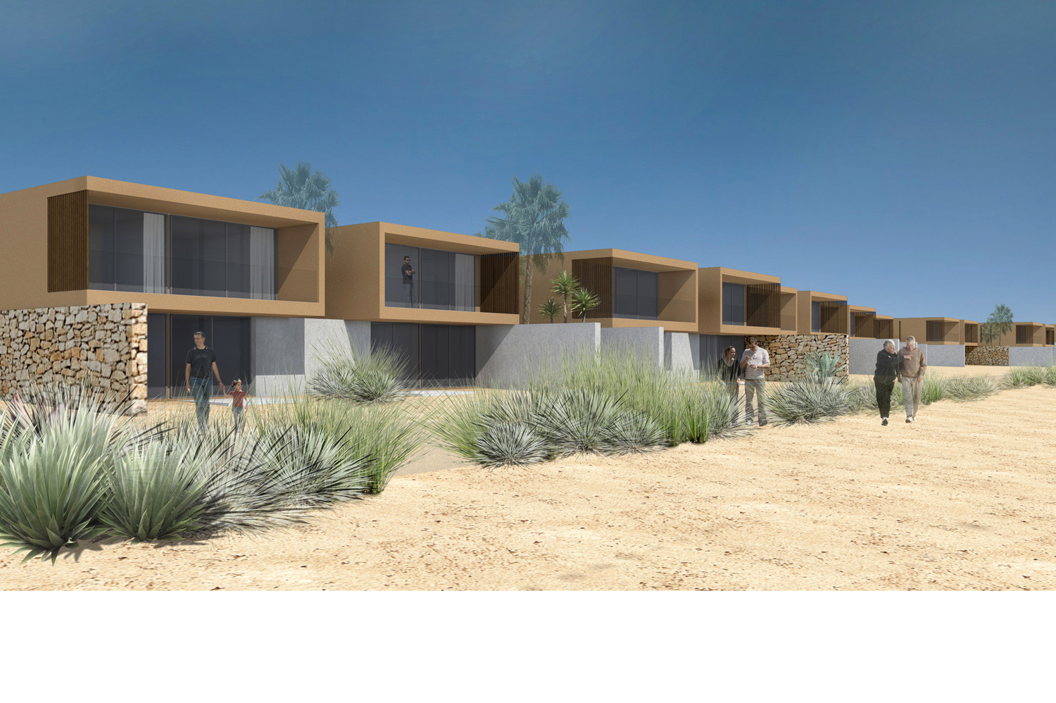 Le projet est constitué d'un ensemble de bâtiments en RDC + 2 maximum, articulés à travers des cheminements clairs et paysagers en privilégiant la vue sur mer et les nécessités fonctionnelles. Le schéma urbain s'articule à travers des axes principaux qui irriguent le projet tout en ménageant des vues sur la mer et enrichis de cheminements secondaires qui se fondent dans la trame paysagère.